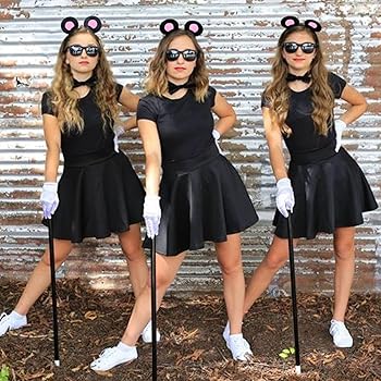 A cute and comfy favorite that always gets a laugh. Grab gray outfits like matching sweatsuits or mini dresses, throw on mouse ears, black sunglasses, and little tails. Carry walking sticks or add glitter to your makeup for a chic twist. It’s perfect if you want something low-effort but still creative. You can even make it trendy by adding faux-fur coats, silver accessories, or matching sneakers. Simple, cozy, and guaranteed to be a party favorite.