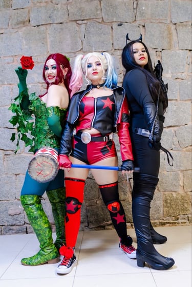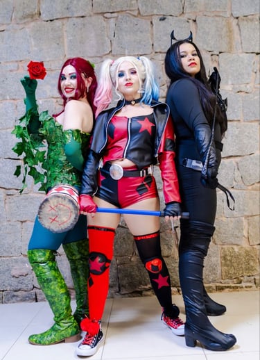 Serve pure chaos and confidence with this comic book power trio. Harley brings the playful edge with red and blue accents or a sequin bodysuit, Ivy goes for sultry greens and vine details, and Catwoman keeps it sleek in black leather or latex. Add bold eye makeup, dramatic hair, and fierce boots to finish the look. Together, you’ll look unstoppable like the ultimate girl gang running Gotham City. It’s sexy, strong, and made for girls who want to own the night.