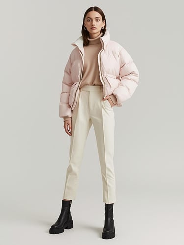 Style tip: Style a pastel or metallic puffer with high-waisted pants and chunky boots for a look that is both cozy and fashion-forward.