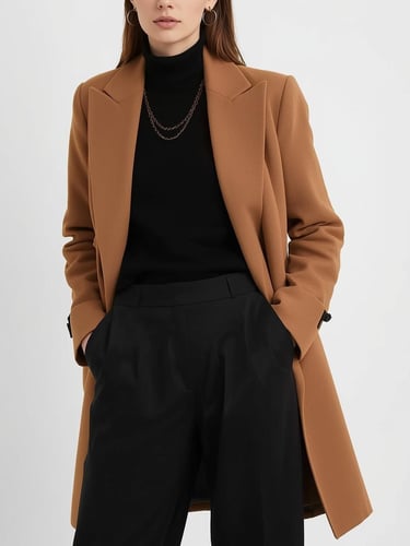 Style tip: Choose a bold silhouette or unique detail like wide lapels or a tie belt. Layering a structured coat over a monochrome outfit looks instantly refined and effortless.