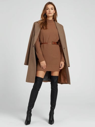 Style tip: Pair a ribbed or oversized sweater dress with knee-high boots and a belted coat for a polished winter look. You can also layer tights underneath or add a chunky scarf for a soft, layered effect.