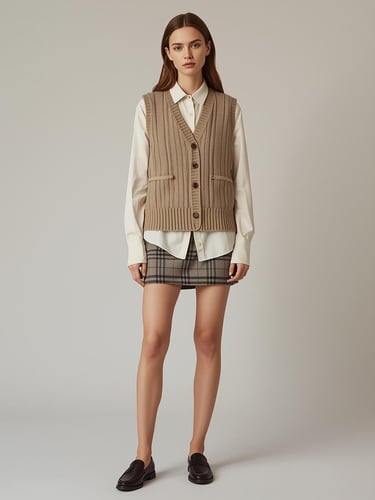 Style tip: Layer a knit vest over a collared shirt, pair with a plaid skirt, and finish the look with loafers and tights for a stylish winter-ready ensemble.